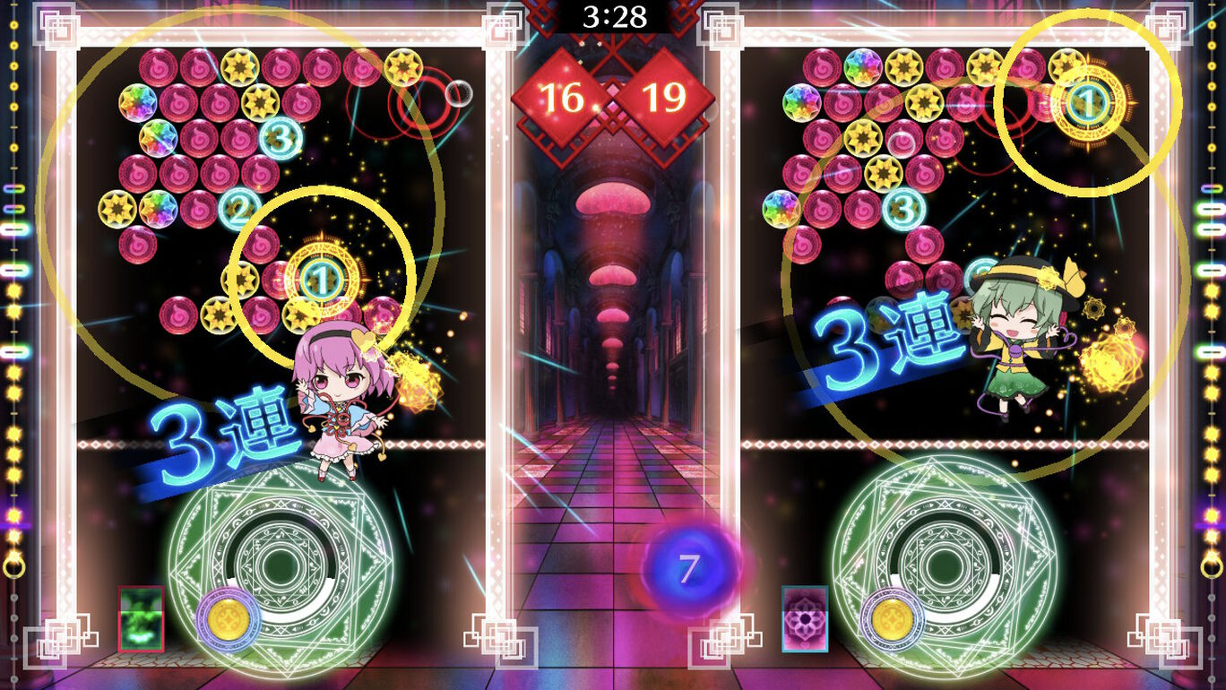 東咒對泡泡龍對戰、東方PROJECT 歌曲的熟悉度、節奏準度、冒險與保守的策略轉換、一心(眼)多用(讀譜、puzzle解板、組板進攻、計算符卡和覺醒、觀察對手的攻防階段等)都有一定的要求。算是只能用心流玩,一玩就只能進心流的奇特體驗,單就這個體驗就值得一玩了。